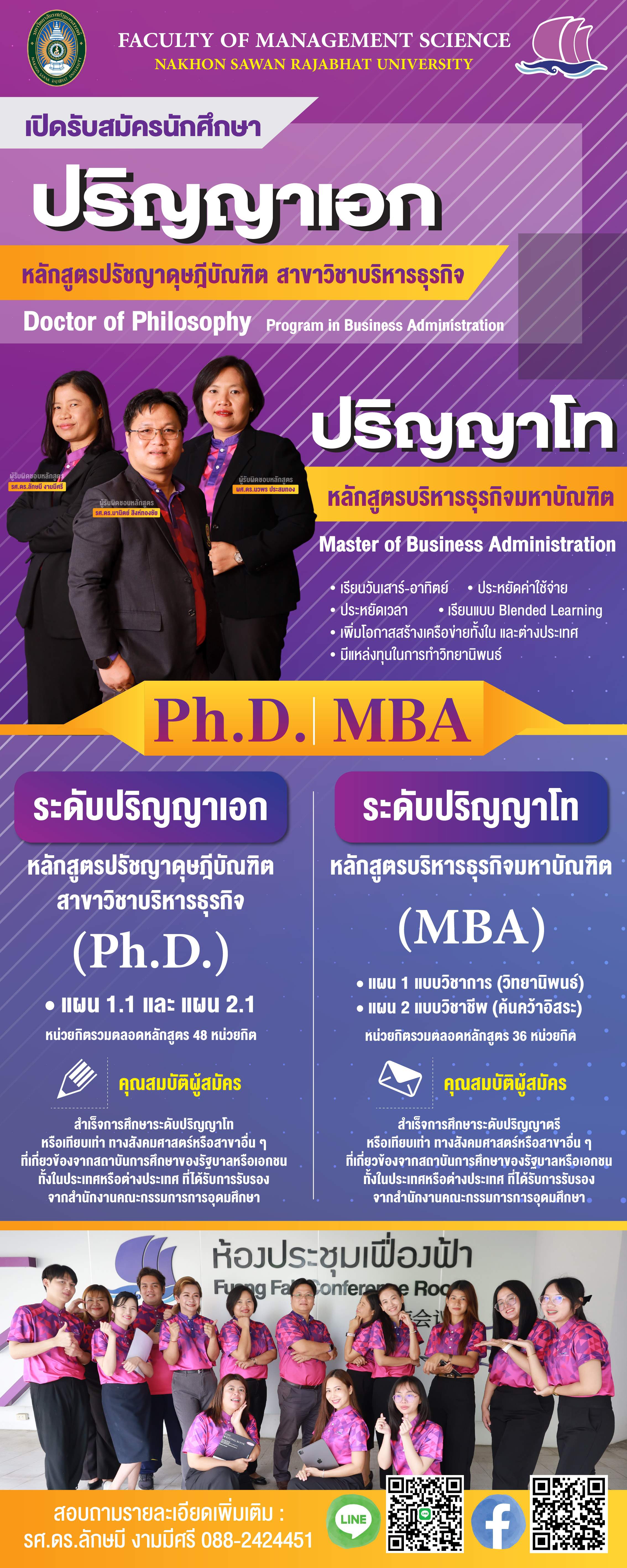 - ชื่อย่อปริญญาอังกฤษ : Doctor of Philosophy(Business Administration)